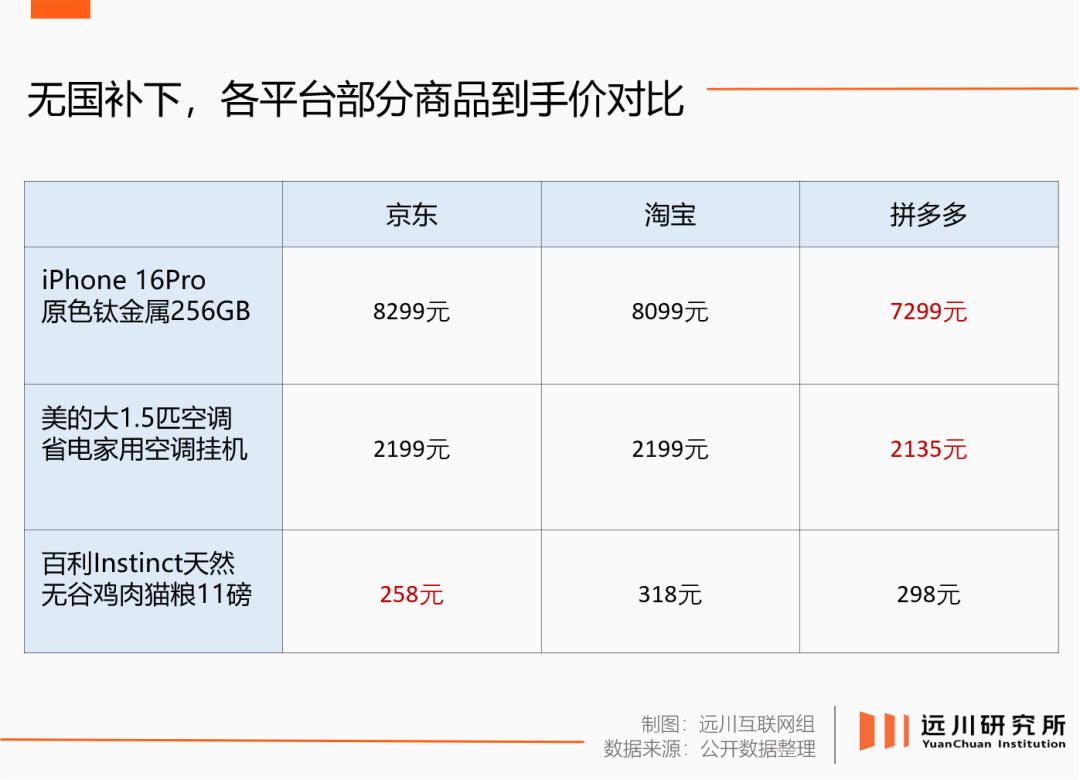 結(jié)果是友商百億補(bǔ)貼這些年,國(guó)補(bǔ)一夜回到解放前。去年三季報(bào)業(yè)績(jī)會(huì)上,拼多多聯(lián)席CEO趙佳臻就委婉提及,拼多多不僅因平臺(tái)模式錯(cuò)失了國(guó)補(bǔ)的機(jī)會(huì),而且要自費(fèi)補(bǔ)貼付出“遠(yuǎn)高于同行的巨大成本[8]”。