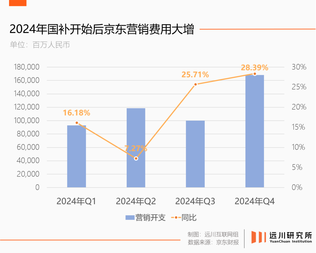 去年四季度,國(guó)補(bǔ)影響完全釋放,落后許久的商品收入增速成功反超服務(wù)收入。