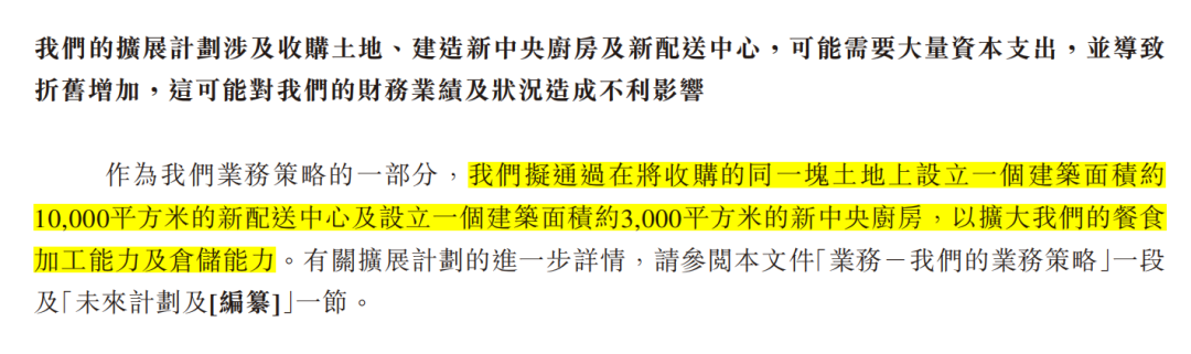 而宏信超市也確實正有此意,其在招股書中強調(diào)其預制菜業(yè)務(wù)的發(fā)展?jié)摿,并計劃擴大預制菜的供應(yīng)鏈規(guī)模。最新招股書披露,公司將通過土地收購來建立新中央廚房、新配送中心,這表明宏信超市有明確的市場拓展和基礎(chǔ)設(shè)施建設(shè)需求。
