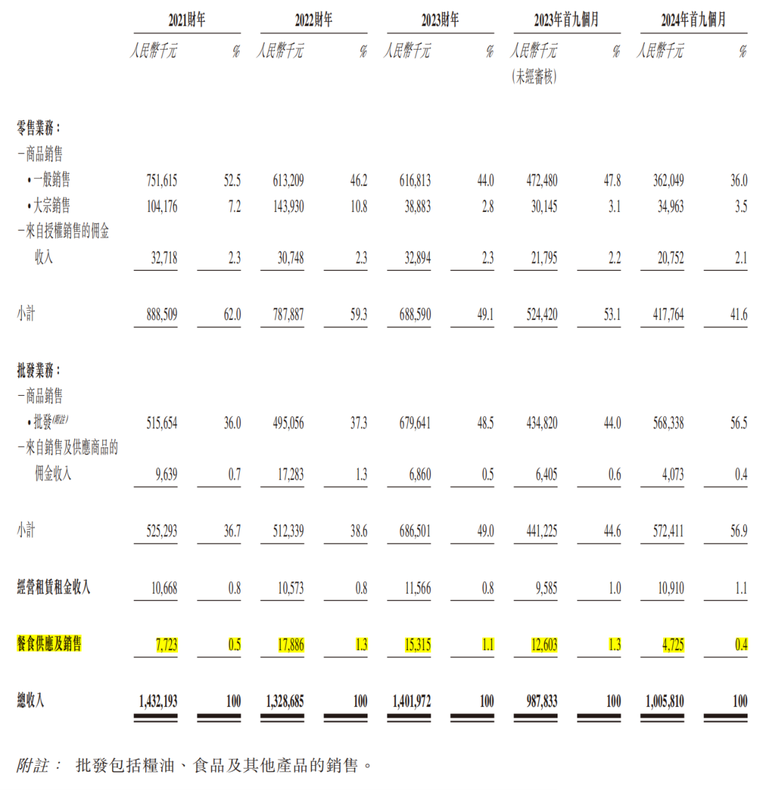 具體來看,宏信超市的業(yè)務(wù)可分為零售業(yè)務(wù)、批發(fā)業(yè)務(wù)、租賃業(yè)務(wù)、餐食供應(yīng)及銷售業(yè)務(wù),其中零售業(yè)務(wù)和批發(fā)業(yè)務(wù)是該公司主要收入來源。