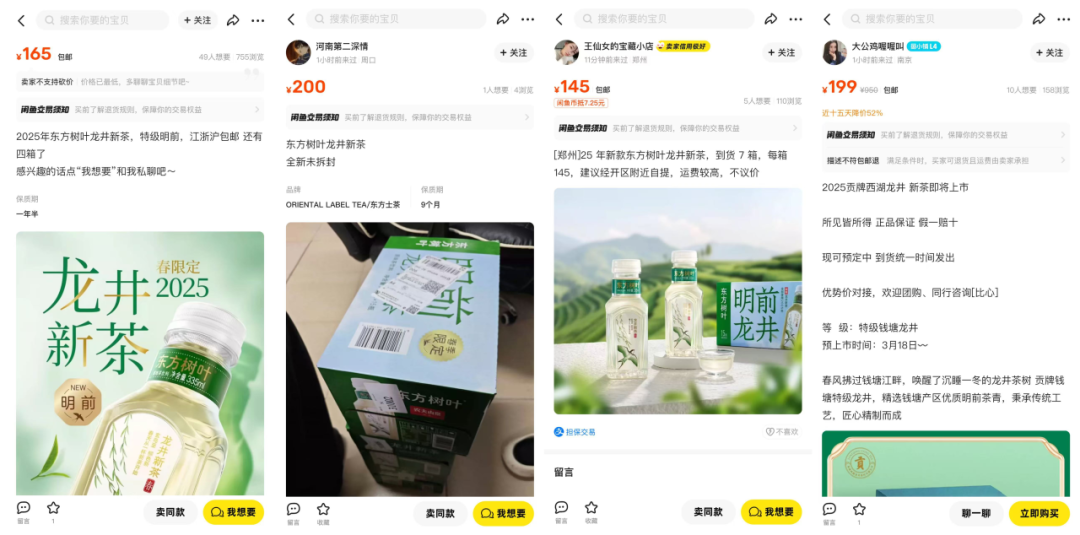 從閑魚普遍的情況來看,一箱15瓶原價120的規(guī)格,往往要加價到150元。倒賣茶飲料,也成了一門好生意。