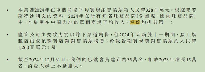年報(bào)顯示,2024年老鋪黃金在單個(gè)商場的平均銷售業(yè)績約為3.28億元;根據(jù)弗若斯特沙利文統(tǒng)計(jì),老鋪黃金在所有國內(nèi)外知名珠寶品牌當(dāng)中,在中國大陸的單個(gè)商場平均收入、坪效均為第一。