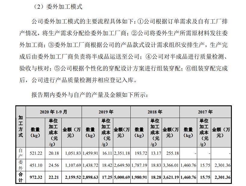 消費(fèi)者的吐槽,反映出老鋪黃金的品控存在一定問題。招股書顯示,老鋪黃金在2018年之前都以外包生產(chǎn)為主,直到在湖南岳陽自建工廠后,老鋪黃金才開始從外包轉(zhuǎn)向自產(chǎn)。2021年–2023年,老鋪黃金外包生產(chǎn)占比分別為36%、32%、41%。