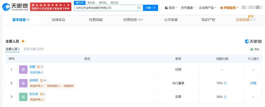 據(jù)“天眼查”數(shù)據(jù)顯示,北京紅喬金季和天津金橙均為徐高明父子持有。而另一自然人股東陳國棟,其共持有老鋪黃金9.14%的股份;據(jù)媒體報(bào)道,其于1994年加入聯(lián)想,曾任融科智地控股有限公司董事及深圳市聯(lián)想科技園有限公司董事兼總經(jīng)理,上述兩家公司均為聯(lián)想控股(3396.HK)的附屬公司。