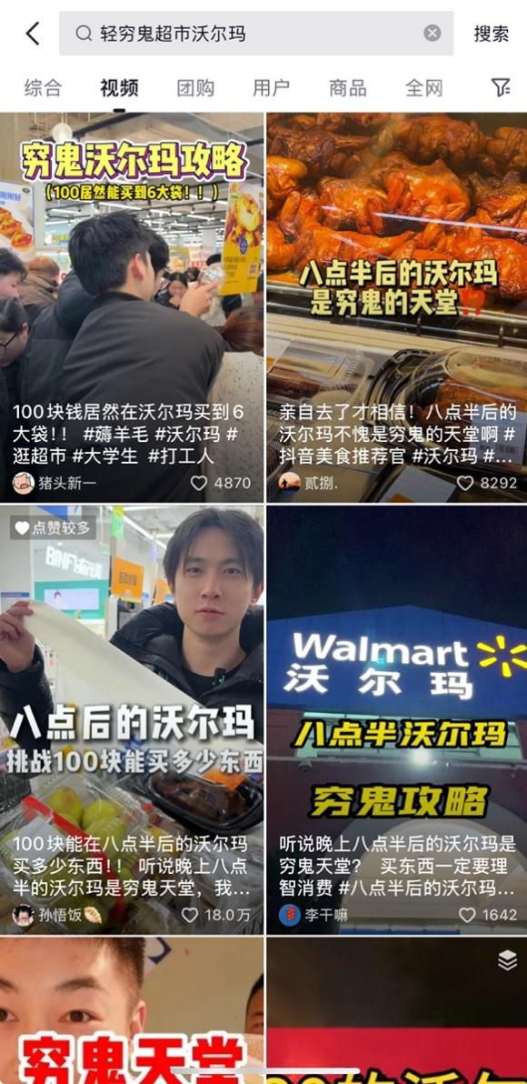 如今,短視頻平臺(tái)充斥著各種沃爾瑪薅羊毛的攻略,up主們甚至稱沃爾瑪是“窮鬼天堂”,尤其是晚上八點(diǎn)以后。
