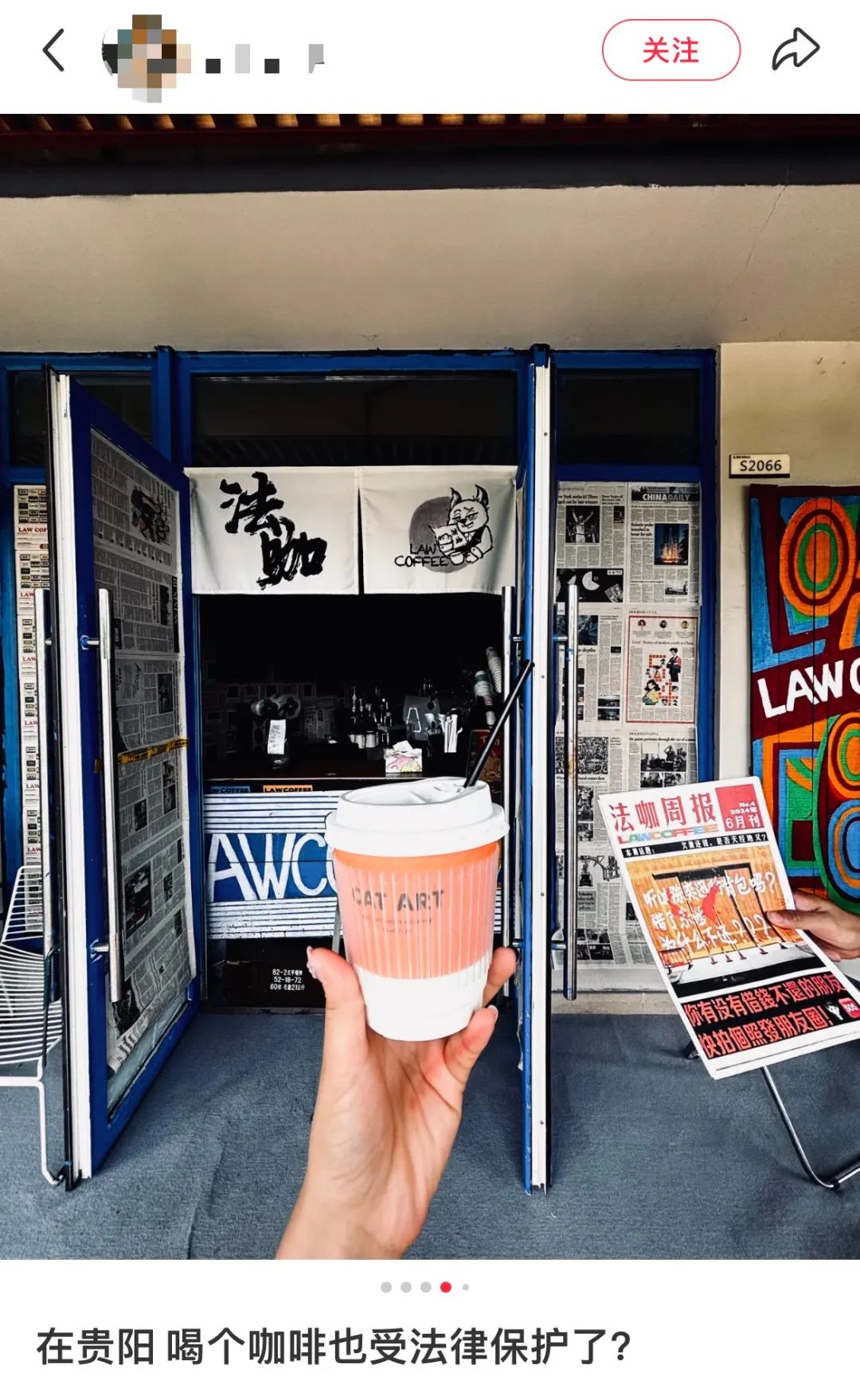像鄭州的庭外咖啡,招牌就標(biāo)明這是“一家合法的咖啡店”、湛江的“律咖”牌匾上宣稱道“一杯律咖解決一個(gè)法律問(wèn)題”、貴陽(yáng)的“LAW COFFEE”會(huì)在門店貼滿自制的“法咖周報(bào)”等等。