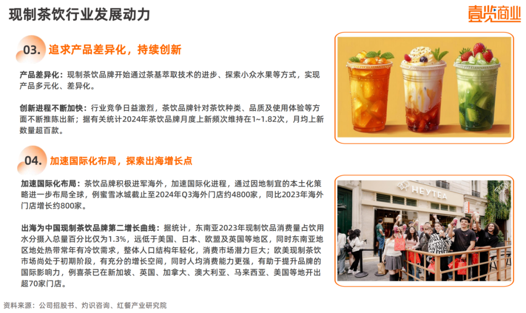 四是探索出海增長(zhǎng)點(diǎn)。蜜雪冰城4800家海外門店背后,是供應(yīng)鏈出海的全新模式;霸王茶姬的“東方美學(xué)輸出”則驗(yàn)證了文化附加值的溢價(jià)能力。新茶飲正從產(chǎn)品貿(mào)易轉(zhuǎn)向生態(tài)出海,通過因地制宜的本土化策略進(jìn)一步布局全球。