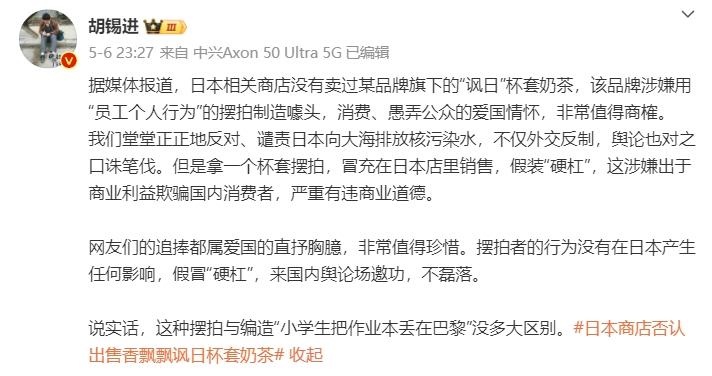 不過,此事也引來媒體和網(wǎng)友“香飄飄擺拍炒作”的質(zhì)疑。資深媒體人胡錫進還曾對此發(fā)表評論稱,“拿一個杯套擺拍,冒充在日本店里銷售,假裝‘硬杠’,這涉嫌出于商業(yè)利益欺騙國內(nèi)消費者,嚴(yán)重有違商業(yè)道德!