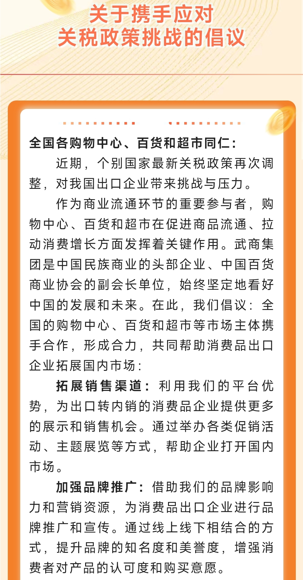 武商集團(tuán)發(fā)倡議書,幫助消費(fèi)品出口企業(yè)拓展國內(nèi)市場