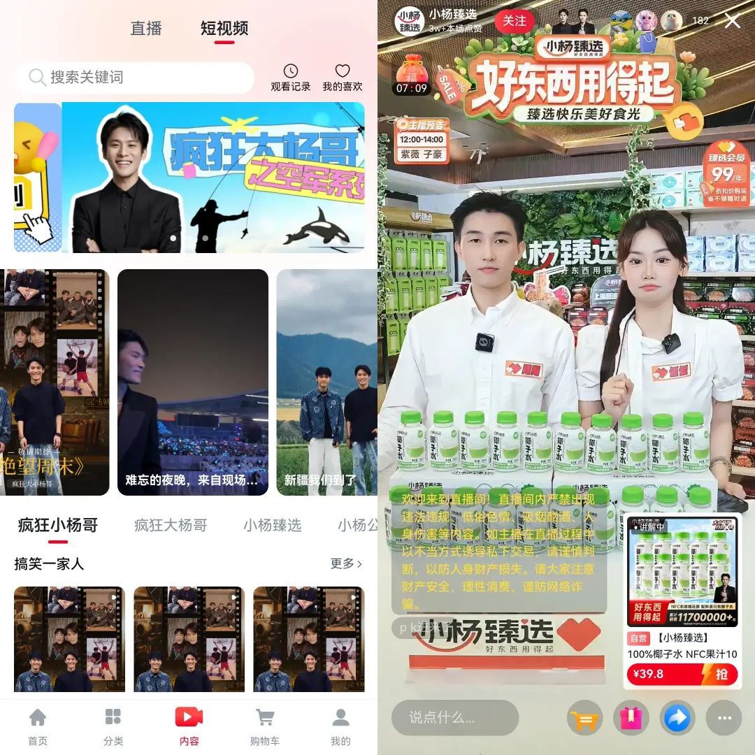 小楊臻選APP中的短視頻和直播內(nèi)容