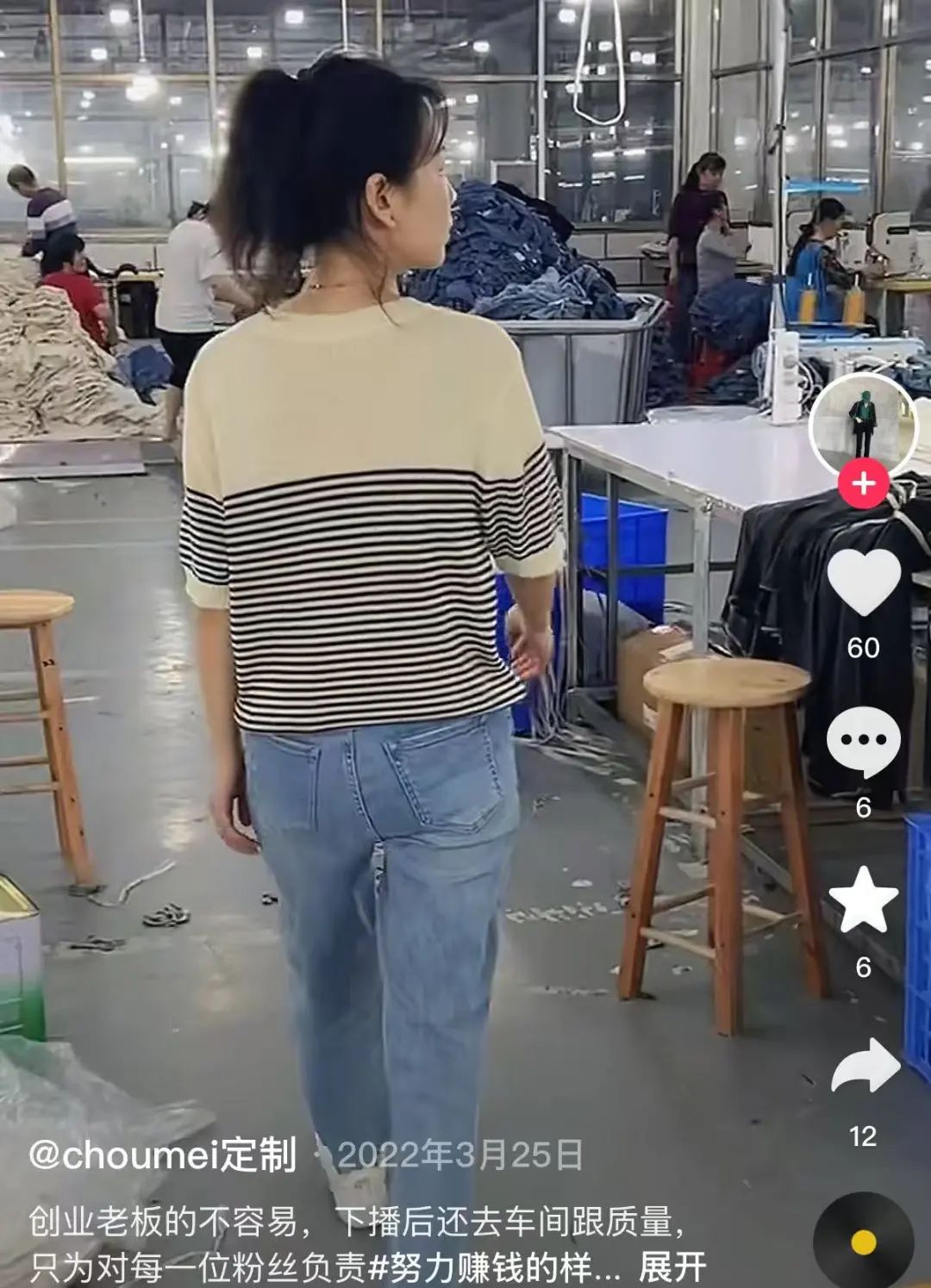 在Choumei Home的賬號(hào)中,有一個(gè)視頻記錄了吉吉老板娘下播后去車間跟質(zhì)量的情景。主理人劉權(quán)表示,在接入了店播后,他更有能力去平衡服裝行業(yè)的“淡旺季”,“反效率”的操作,可以讓生產(chǎn)速度“慢”下來。