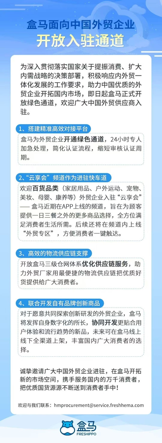 盒馬向中國外貿(mào)企業(yè)開放入駐通道