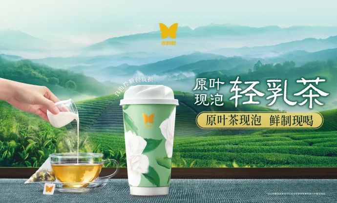 店內(nèi)售賣(mài)的產(chǎn)品也是不走尋常路,全店找不到一臺(tái)奶茶機(jī),杭州售賣(mài)香飄飄旗下“原葉現(xiàn)泡”的輕乳茶系列,每一杯都由店員將茶包放入手沖壺中萃取后,融合鮮牛乳及其他配料制成,并有開(kāi)放式制作區(qū)可以呈現(xiàn)“原葉現(xiàn)泡”全過(guò)程,品牌還創(chuàng)新性地提出“一杯兩泡”概念,讓消費(fèi)者能同時(shí)享受到原葉茶和輕乳茶;
