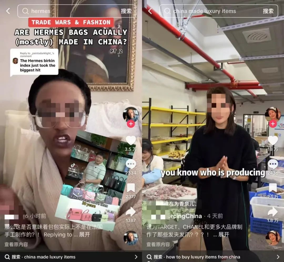 例如有中國(guó)制造商開始在Tik Tok上投放視頻“曝光”稱,許多奢侈品品牌的包包、首飾都是中國(guó)制造,而且價(jià)格高得離譜,引發(fā)海外消費(fèi)者的高度關(guān)注。部分制造商甚至在線做起了直銷,吸引消費(fèi)者到直播間購買。