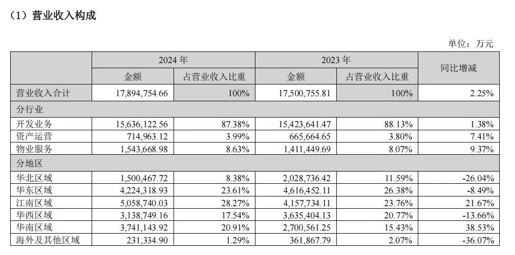 在開發(fā)利潤(rùn)空間收窄的背景下,持有型物業(yè)已經(jīng)成為穩(wěn)定收益的重要來源之一。華潤(rùn)置地經(jīng)營(yíng)性不動(dòng)產(chǎn)收入達(dá)233億元,同比增長(zhǎng)4.8%;招商蛇口持有物業(yè)收入達(dá)74.64億元,同比增長(zhǎng)12%,涵蓋商業(yè)、公寓、園區(qū)等多業(yè)態(tài)。