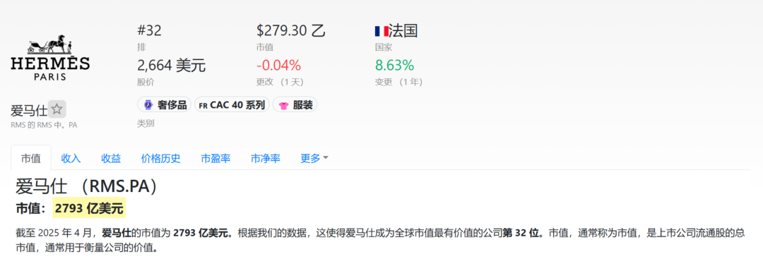 另外,聚美麗此前在《全球美妝集團最新排行出爐!》一文的分析中指出,在市值上,LVMH集團的競爭對手愛馬仕集團,正步步緊逼,截至4月15日18:30,愛馬仕(2793億美元,約合人民幣20432億元)已超過了LVMH集團。