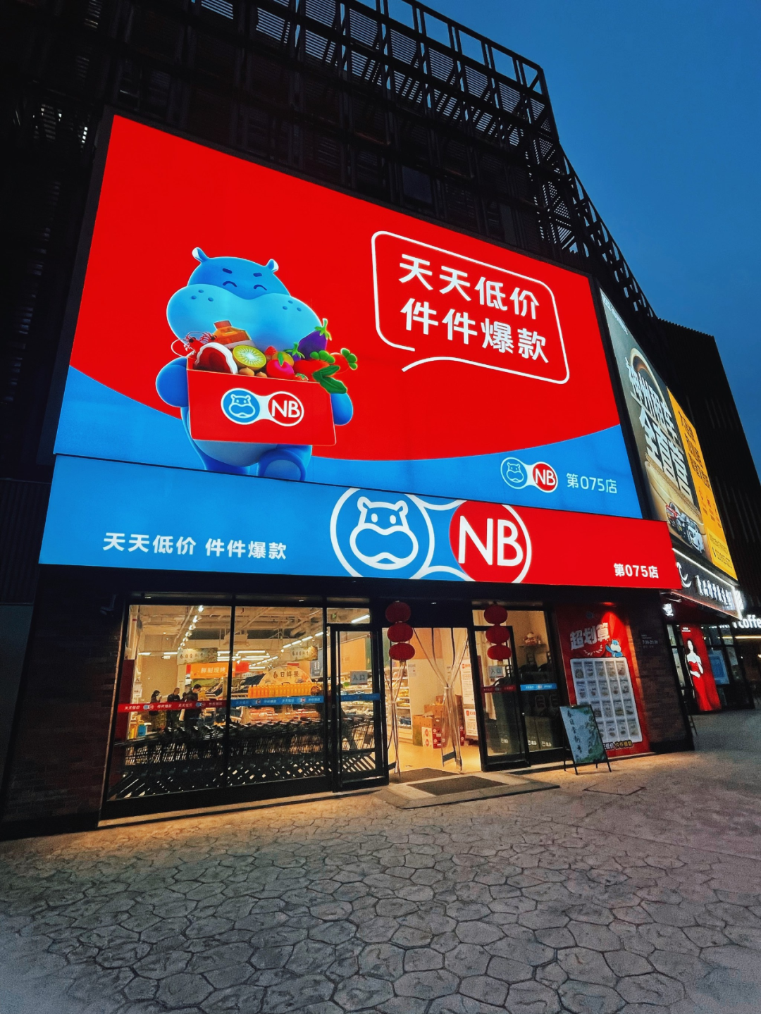 先講“盒馬NB”,盒馬NB是盒馬旗下的硬折扣店品牌,主要開設(shè)在社區(qū)周邊,服務(wù)周邊居民的日常購物需求。更重要的是,它強(qiáng)調(diào)“天天低價(jià)、件件爆款”,自有品牌占到一定的比例。
