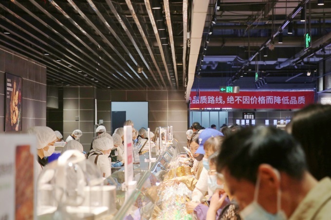 熟食矩陣既有胖東來鹵味專車鮮配的小甜腸、特色牛肉條,更有梅汁排骨、異地風(fēng)味鍋包肉等創(chuàng)新產(chǎn)品,同時(shí)又保留開封人鐘愛的現(xiàn)制鍋貼、煎餃,形成“傳統(tǒng)與潮流共生”的美食矩陣。