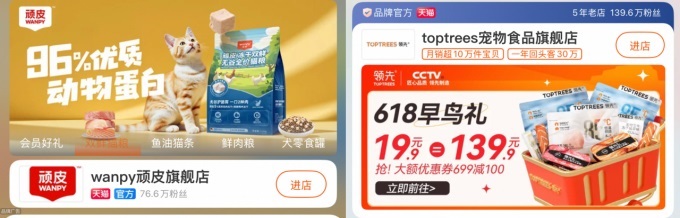 第三方數(shù)據(jù)也印證了天貓平臺的作用。知名咨詢機構(gòu)久謙咨詢報告稱,天貓在2024年雙11寵物品類首階段大促銷售中占據(jù)高達66%的市場份額,領(lǐng)先第二名三倍以上。天貓的平臺優(yōu)勢正在轉(zhuǎn)化為品牌增長勢能,頑皮、Toptrees領(lǐng)先曾多次在天貓618、雙11實現(xiàn)三位數(shù)增長。
