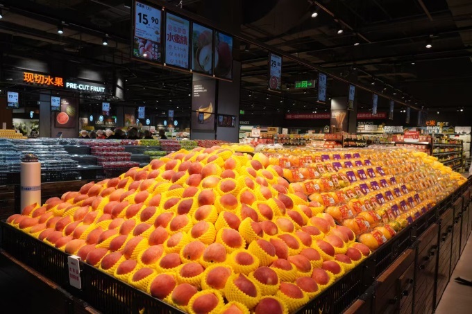 熱帶水果專區(qū)新設的貓山王榴蓮專柜前,年輕消費者排起長隊!艾F(xiàn)在家門口就能買到整顆金枕榴蓮,所見即所得,買得更放心。”抱著榴蓮的90后顧客林小姐欣喜地說。