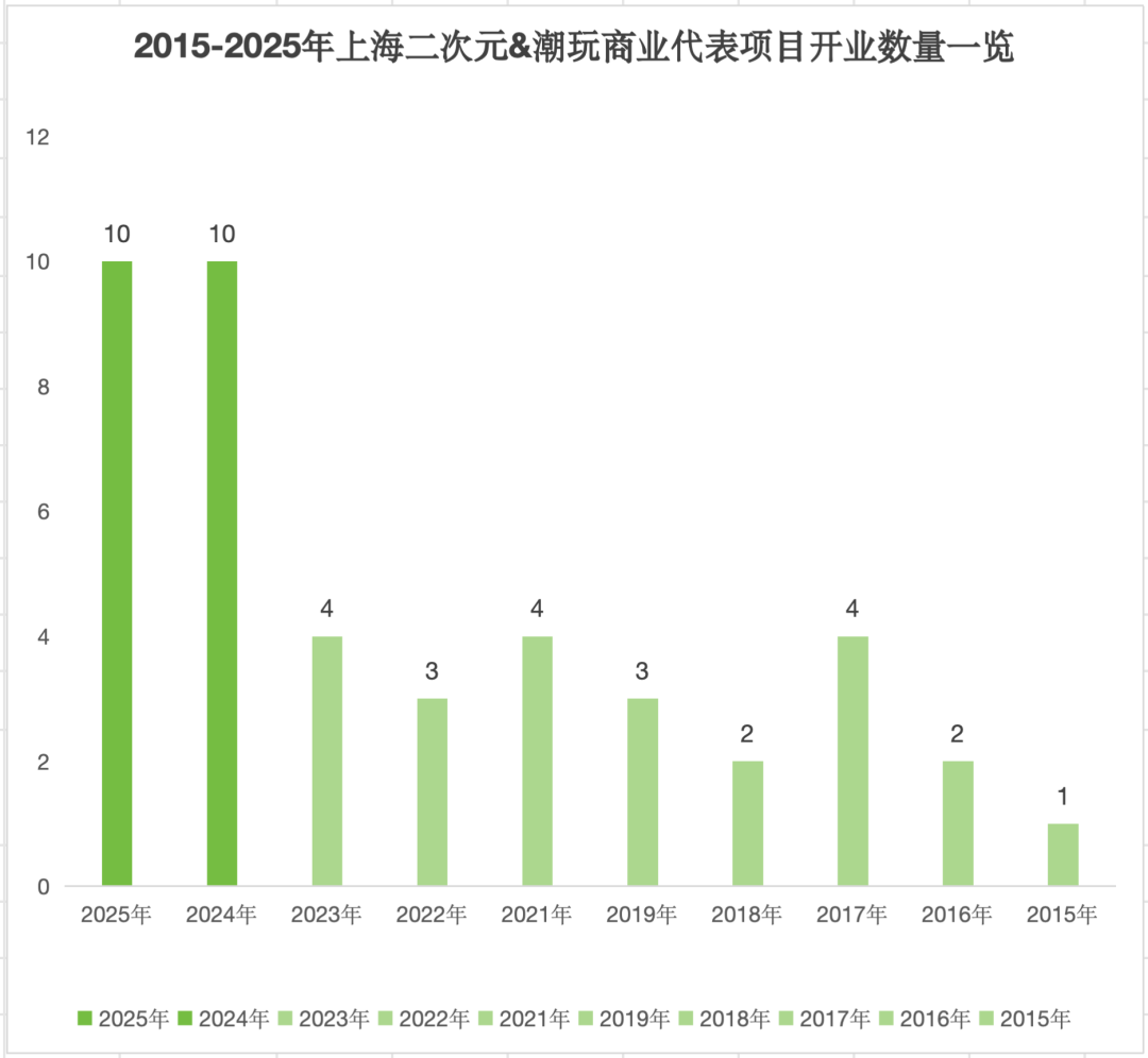 2015年到2023年,上海每年嘗試引入二次元的項目穩(wěn)定在2至4家之間。