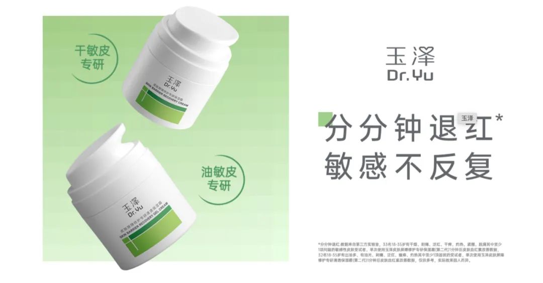 在品牌矩陣中,玉澤與六神被定位為“第一梯隊(duì)”,成為戰(zhàn)略調(diào)整的核心抓手。玉澤以“醫(yī)研共創(chuàng)”為根基,2025年一季度完成品牌形象、產(chǎn)品配方到專利技術(shù)的全方位升級。玉澤第二代屏障修護(hù)系列面霜,通過與中國中醫(yī)科學(xué)院合作引入青蒿提取物,并應(yīng)用PBS屏障自生技術(shù),激活皮膚屏障調(diào)控基因,上市一個(gè)半月全渠道GMV實(shí)現(xiàn)高兩位數(shù)增長。另一明星單品大分子防曬憑借“0%暴露率”的臨床數(shù)據(jù),登上《皮膚科學(xué)通訊》期刊,三八大促期間自播GMV同比暴漲三位數(shù)。