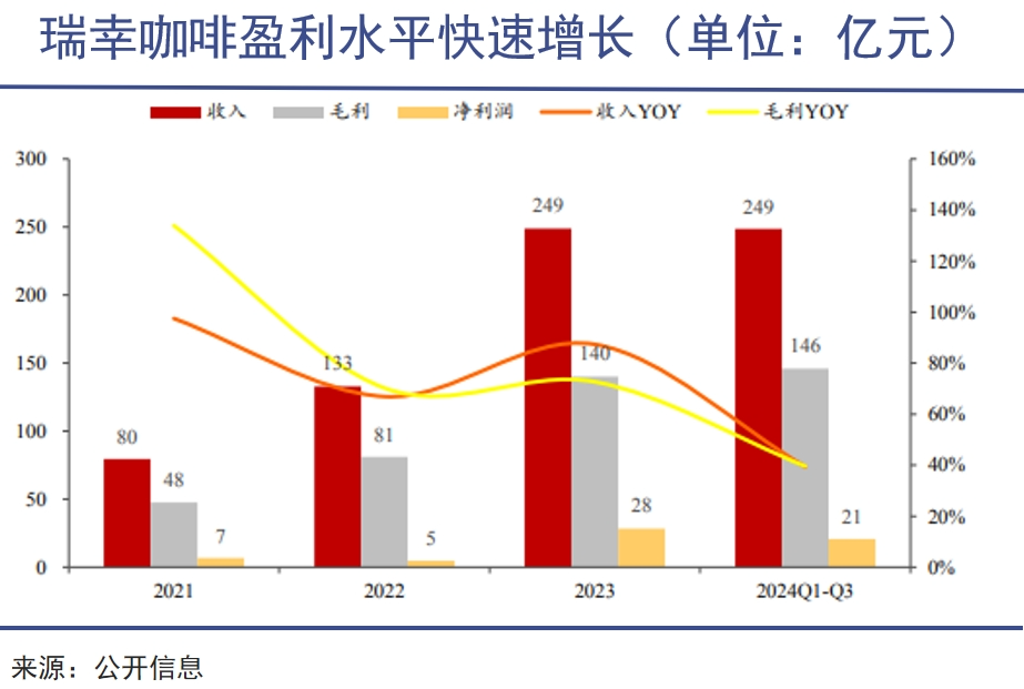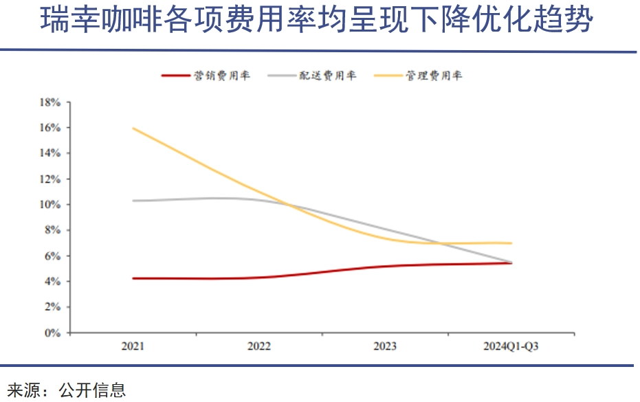 通過(guò)改善供應(yīng)鏈和產(chǎn)品結(jié)構(gòu),2024年瑞幸咖啡原材料成本比2023年同期增長(zhǎng)了10億元,但原材料成本占總凈收入的比例從2023年同期的約50%降至40%,從而提高了毛利率。