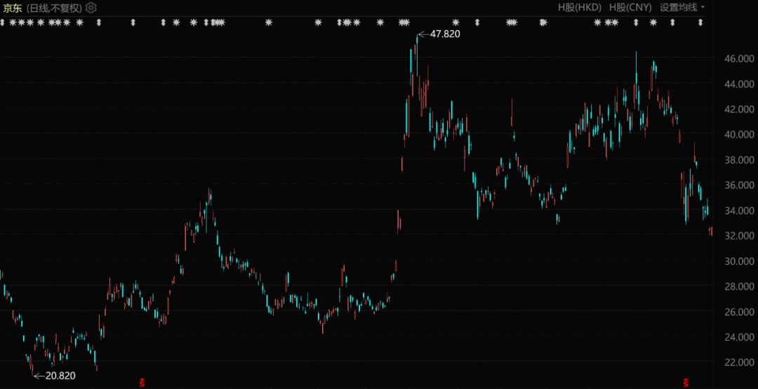 京東股價(jià)表現(xiàn)(自2024年1月至今)