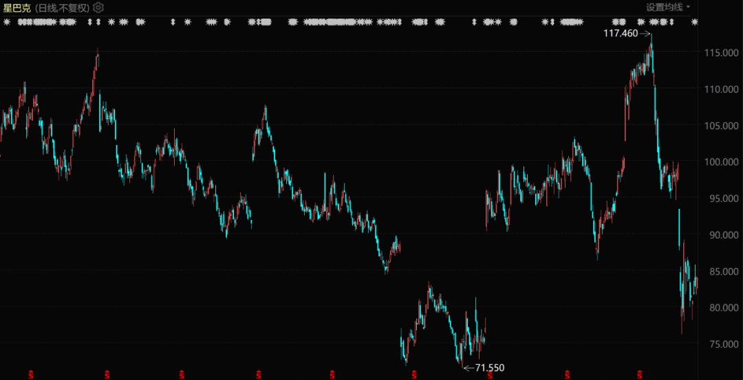 星巴克股價(jià)表現(xiàn)(自2023年至今)