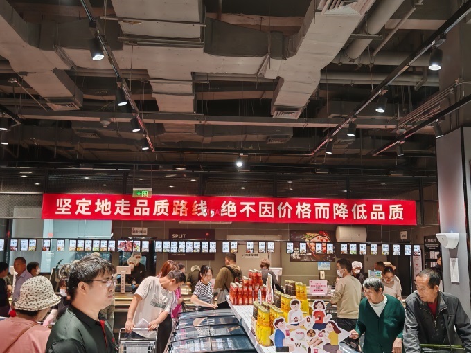 此外,食品安全方面,門店推行了新鮮果切“468原則”,即切好后超過(guò)4小時(shí)八折、6小時(shí)六折、8小時(shí)下架,在保障新鮮的同時(shí),果切組合按照水果甜度高低標(biāo)明了食用順序,讓消費(fèi)者獲得最佳的口感。葉菜、肉禽、水產(chǎn)等部分商品也會(huì)根據(jù)當(dāng)天情況做日清折價(jià),不賣隔日商品。