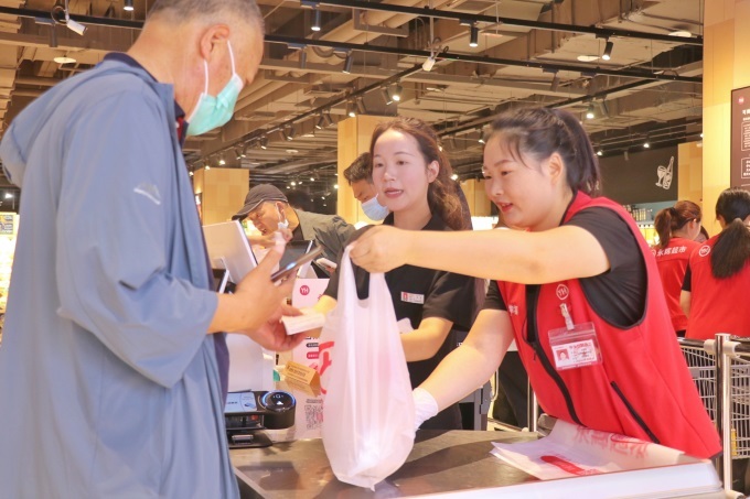與商品結(jié)構(gòu)調(diào)整伴隨的是,調(diào)改后的門(mén)店在環(huán)境、服務(wù)、食品安全等消費(fèi)體驗(yàn)升級(jí)方面全面升級(jí)。門(mén)店取消強(qiáng)制動(dòng)線設(shè)計(jì),消費(fèi)者可以更為自由地在門(mén)店中選購(gòu)。中島貨架高度從2.4米降至1.6米,層數(shù)從8-9層精簡(jiǎn)至5-6層,過(guò)道寬度拓寬至2.5米,充分實(shí)現(xiàn)“無(wú)遮擋式購(gòu)物”。