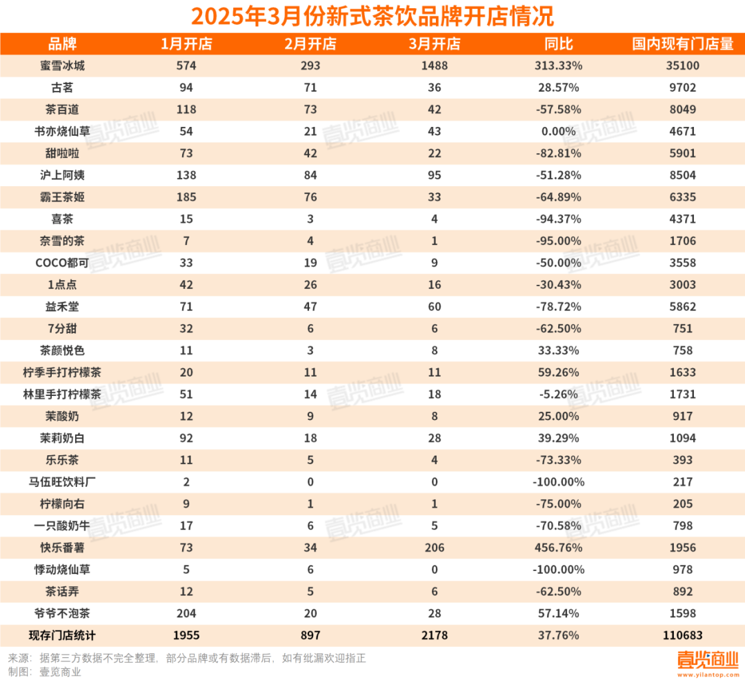 春節(jié)節(jié)點過去,行業(yè)逐步回暖,新茶飲開店總量回升。