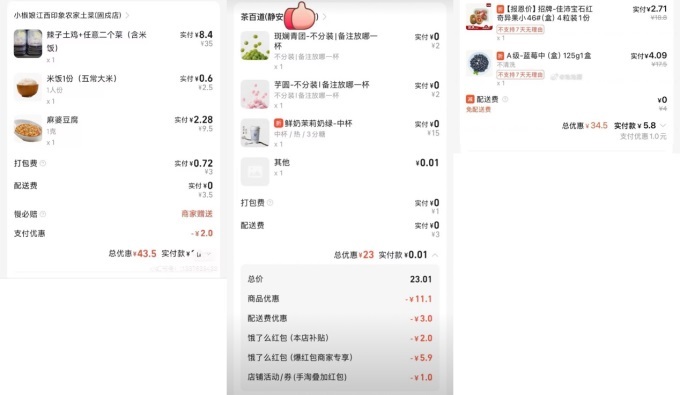 觀察微博、小紅書等社交媒體平臺相關信息可發(fā)現(xiàn),淘寶閃購上線兩日內(nèi),大量各地消費者進行了在線曬單,諸如0.1元喝上了奶茶、2元吃了一頓飯、5元吃藍莓奇異果等等。在淘寶官方微博評論區(qū),各地消費者要求在其所在城市盡快上線的評論始終在刷屏。