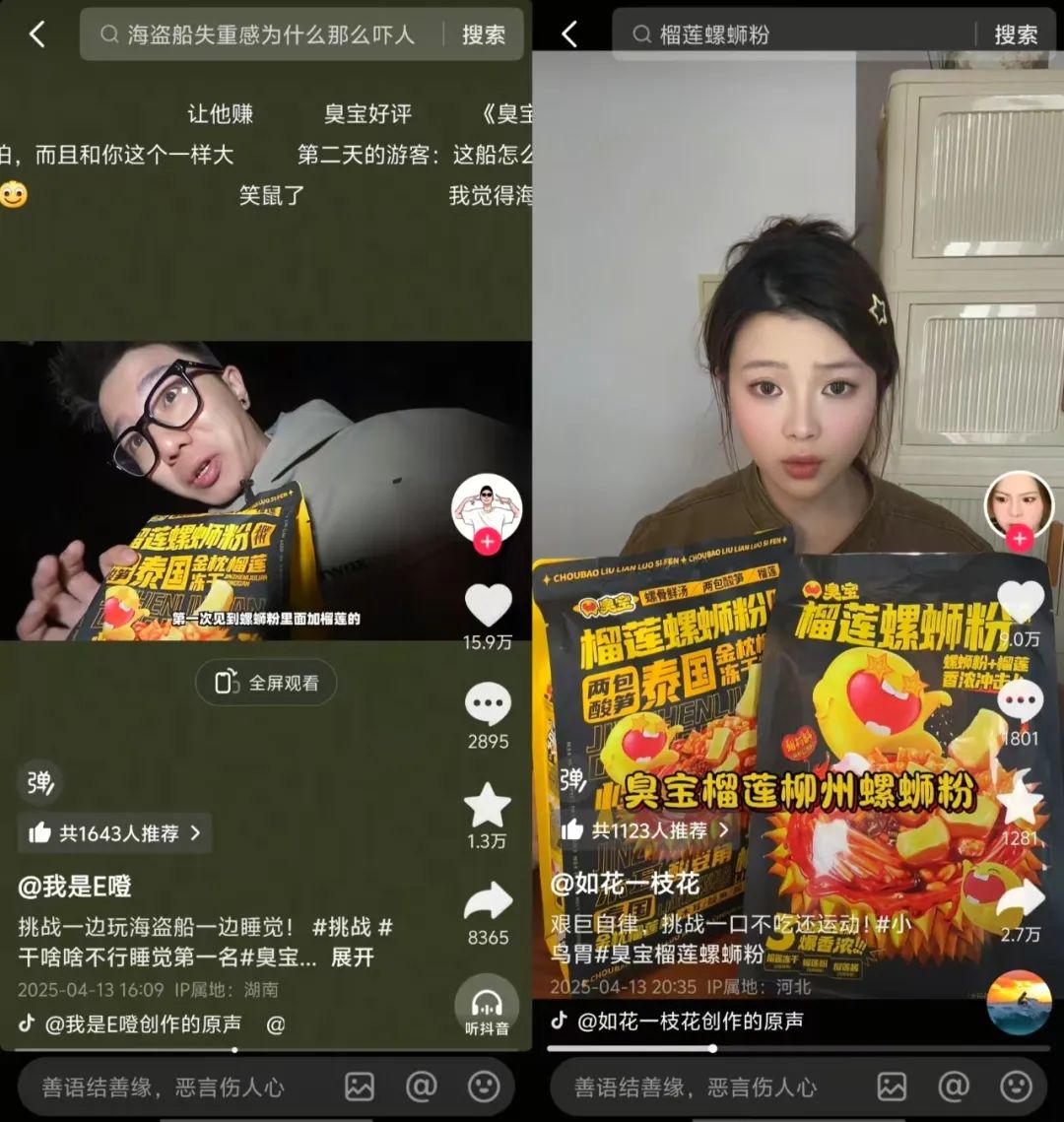 一切緣起于一次無心的用戶自創(chuàng)——有人在抖音把榴蓮塞進(jìn)螺螄粉,一口下去先皺眉后仰頭,大呼“臭得過癮”。