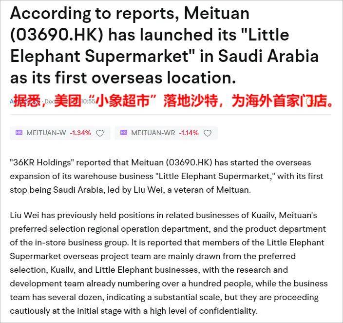 本來對小象超市布局沙特這個話題無感的,畢竟沒有一手資料,且國內(nèi)即時零售業(yè)態(tài)都足夠復雜的,不過最近我有個之前在美團工作,后來出來創(chuàng)業(yè)的合作伙伴,近期據(jù)說又被數(shù)倍工資請回去,調(diào)往沙特負責小象超市的沙特的相關(guān)業(yè)務!這讓我不得不把再目光轉(zhuǎn)向沙特版小象!