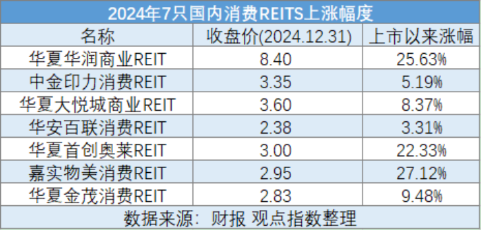 在二級市場表現(xiàn)中,消費REITs價格整體呈現(xiàn)上漲,其中華夏華潤商業(yè)REIT、華夏首創(chuàng)奧萊REIT、嘉實物美消費REIT漲幅超過20%。
