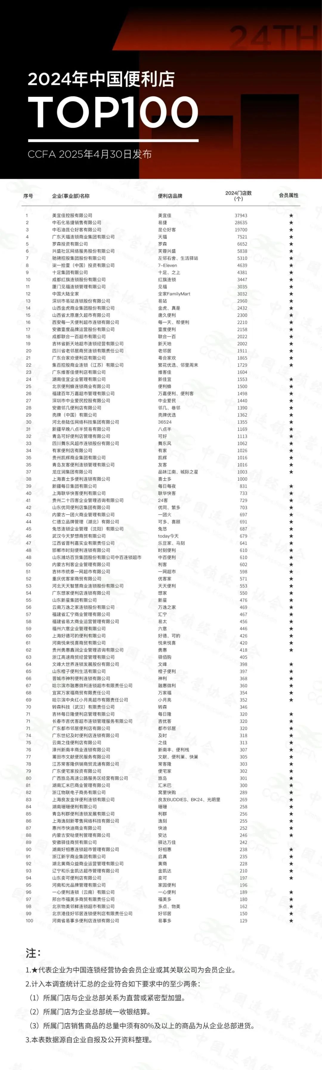 4月30日,中國(guó)連鎖經(jīng)營(yíng)協(xié)會(huì)(CCFA)正式發(fā)布“2024年中國(guó)便利店Top100”。