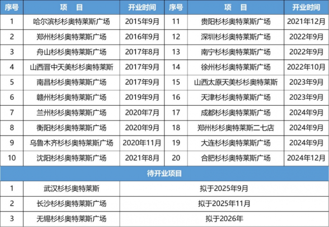按照官方說法,2025-2026年,杉杉商業(yè)集團(tuán)相繼迎來武漢店、長沙店、無錫店的盛大開業(yè),正式營業(yè)的奧特萊斯項目即將達(dá)到23座。
