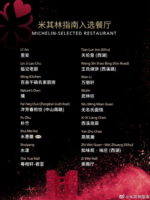 同樣,米其林指南入選名單更是囊括10余種豐富的菜系風(fēng)格,其中4家餐廳首次上榜,它們是:素食餐廳福泉書院、浙江菜餐廳隱外、粵菜餐廳駿溪薈和體現(xiàn)徽菜特色的水墨徽。