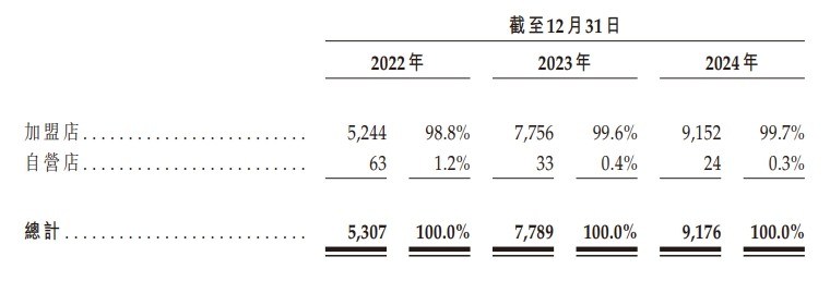 經(jīng)營模式方面,自2022年開啟大規(guī)模門店擴(kuò)張以來,加盟店在滬上阿姨門店網(wǎng)絡(luò)中的占比就持續(xù)保持高位,始終維持在99%以上。數(shù)據(jù)顯示,截至2024年,加盟店與自營店占比分別為99.7%和0.3%。
