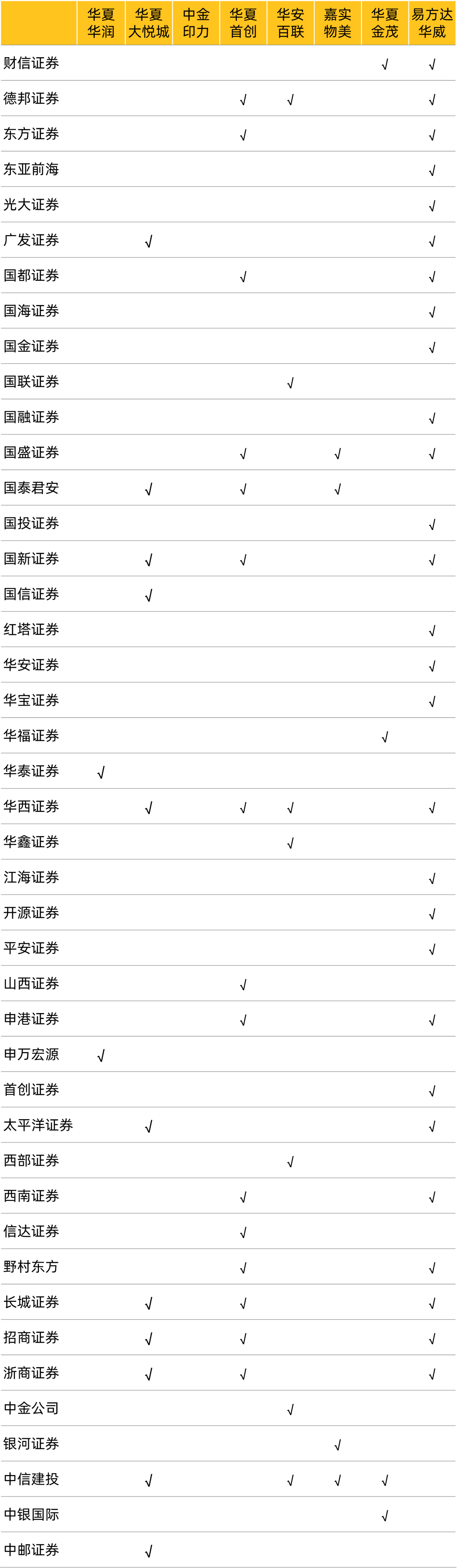 值得指出的是,中信證券同時也是華夏首創(chuàng)奧萊REIT、華夏大悅城商業(yè)REIT、華夏華潤商業(yè)REIT和華夏金茂商業(yè)REIT等4只產(chǎn)品的資產(chǎn)支持證券管理人,另外中國國際金融股份有限公司(中金公司)是中金印力消費REIT的資產(chǎn)支持證券管理人。