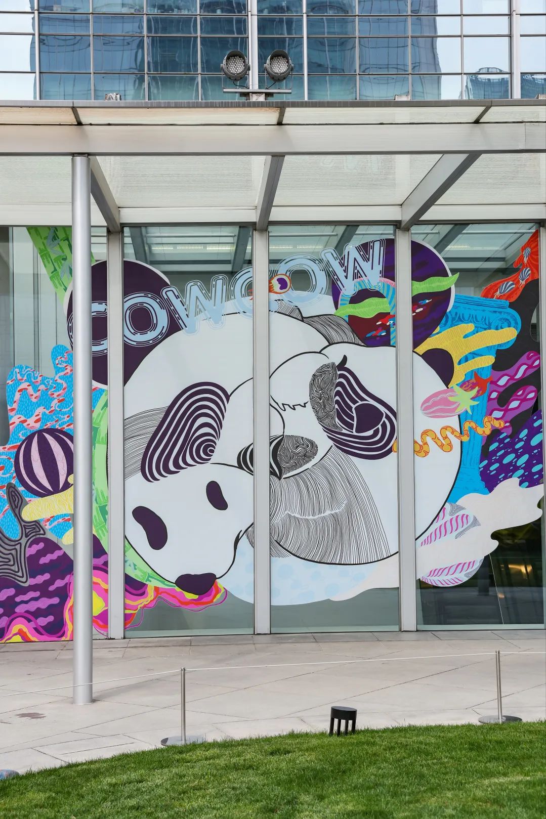 除了名字,在成都IFS門店中,COWCOW還獨(dú)特融入了熊貓、竹子等在地元素,特別邀請(qǐng)了藝術(shù)家壹一合作限量涂鴉,讓消費(fèi)者在與地標(biāo)“爬墻熊貓”打卡的時(shí)候,一眼望過(guò)去就能看到COWCOW。