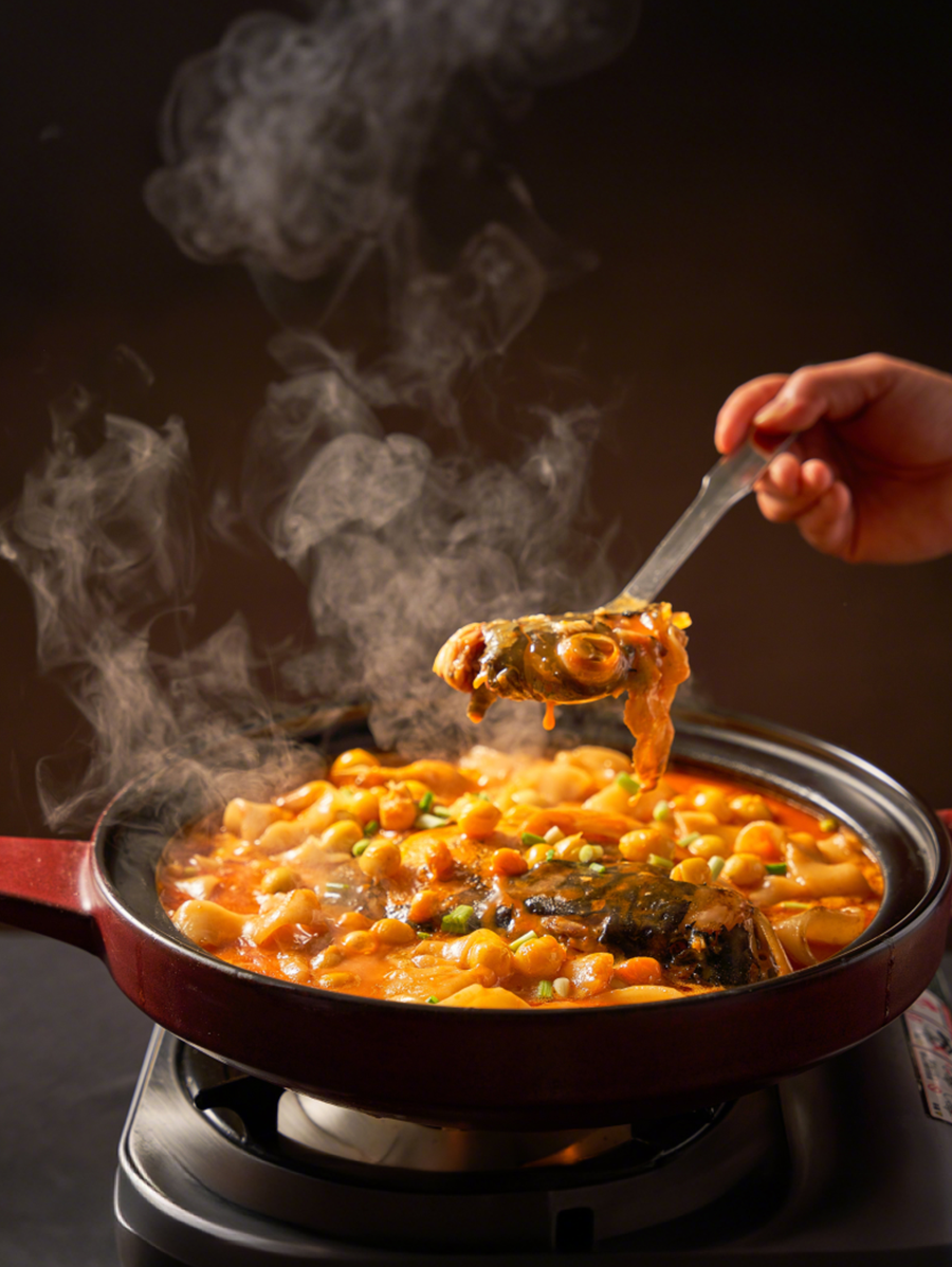 擁有獨(dú)特風(fēng)味和呈現(xiàn)方式的蜂巢米酒;超級(jí)拉絲、外黏里嫩的馬蘇里拉芝士辣炒雞;將經(jīng)典的韓式甜辣口味與本土香辣結(jié)合,呈現(xiàn)果凍感的韓式麻辣生腌蟹鉗;以及一定要趁熱吃,同時(shí)間感受芝士、雞蛋糕和魚籽豐富層次——火山芝士雞蛋糕…