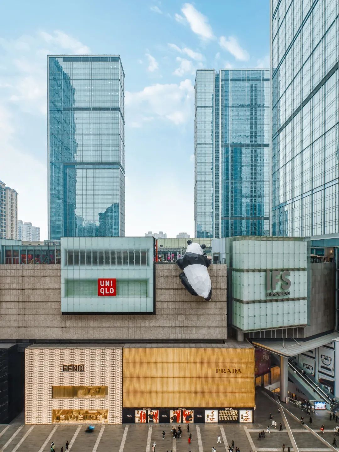 成都IFS 大熊貓戶外藝術(shù)裝置I AM HERE,見(jiàn)證城市煙火
