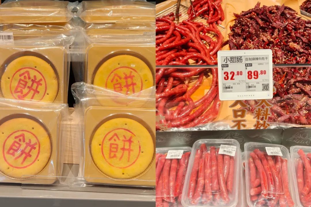 和胖東來(lái)類似,鮮風(fēng)生活也擁有豐富的熟食和烘焙商品,部分品類幾乎是“貼身”對(duì)標(biāo)胖東來(lái),比如口味和售價(jià)都和胖東來(lái)一致的芋泥麻薯“大月餅”;熟食品類兩家都有爆款小甜腸、秘制鹵肉腸以及麻辣手撕牛肉干等。