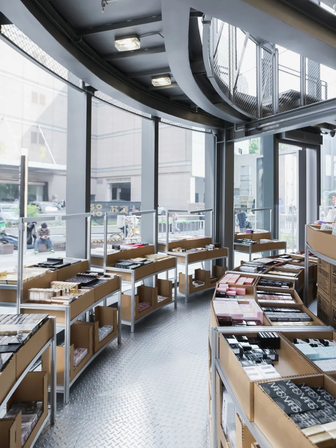 走進(jìn)話梅的最新門店,熟悉的倉儲(chǔ)風(fēng)依然在,裸柱、高密度貨架、簡(jiǎn)潔的工業(yè)設(shè)計(jì),但細(xì)節(jié)里藏著八年迭代的巧思。