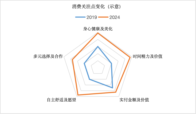 三是健康性消費(fèi)。近年來大家對運(yùn)動(dòng)與健康類消費(fèi)意愿顯著提升。一是關(guān)注健康運(yùn)動(dòng)類網(wǎng)絡(luò)媒體內(nèi)容,在服裝服飾類總體市場平淡的背景下,身心健康類商品消費(fèi)穩(wěn)定增長;二是兼顧身心健康+美化維護(hù),直接參與各類運(yùn)動(dòng)項(xiàng)目活動(dòng);三是關(guān)注消費(fèi)過程和消費(fèi)內(nèi)容對于健康的后續(xù)影響,包括醫(yī)療、家政、飲食消費(fèi)保障等。