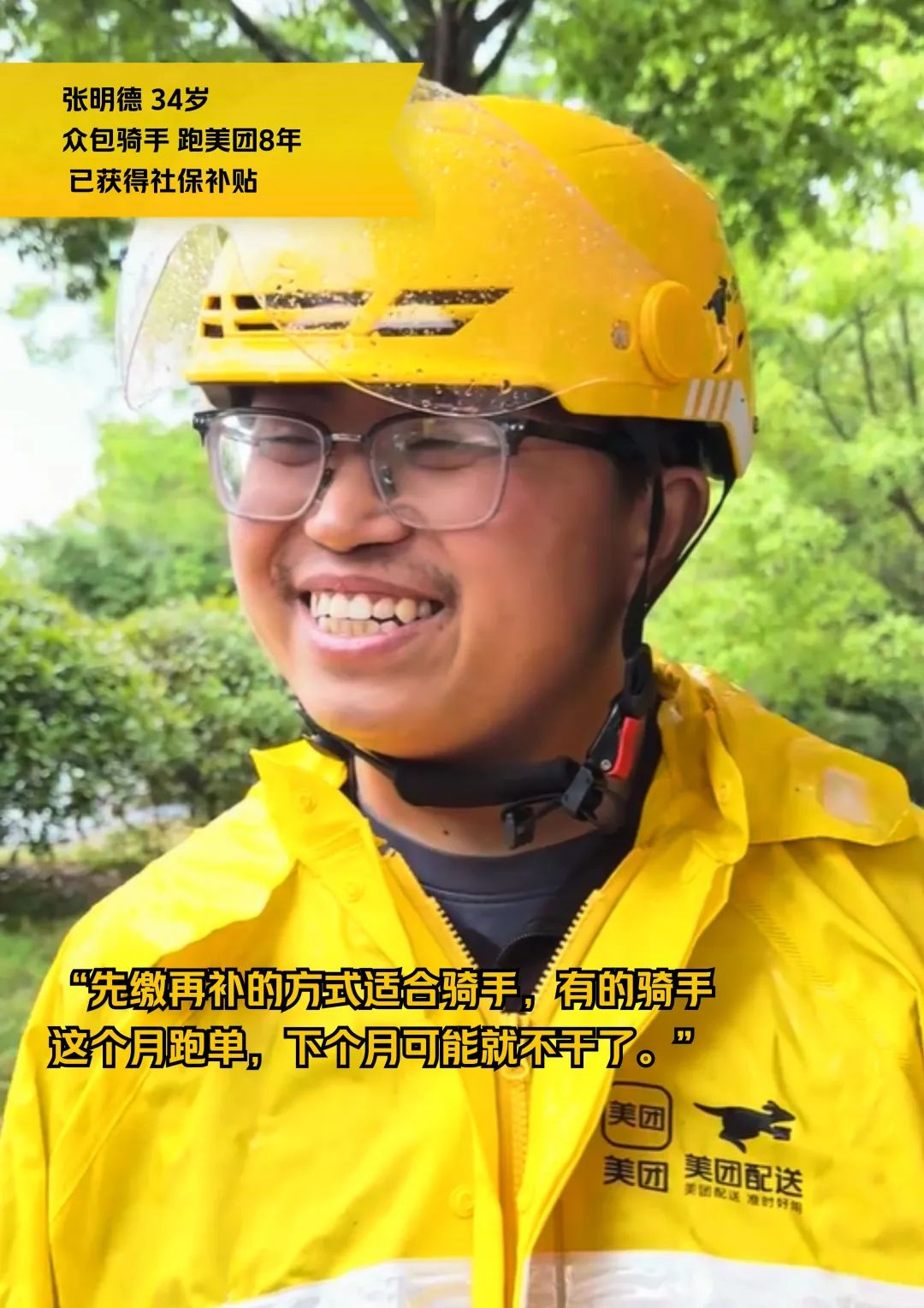 據(jù)站長估算,像他們站點里,大概有80%的騎手符合補貼資格,而且,這些騎手可以選擇在老家或者在工作所在地繳納!爸灰阏E軉,騎手想保,美團就補”,站長說。