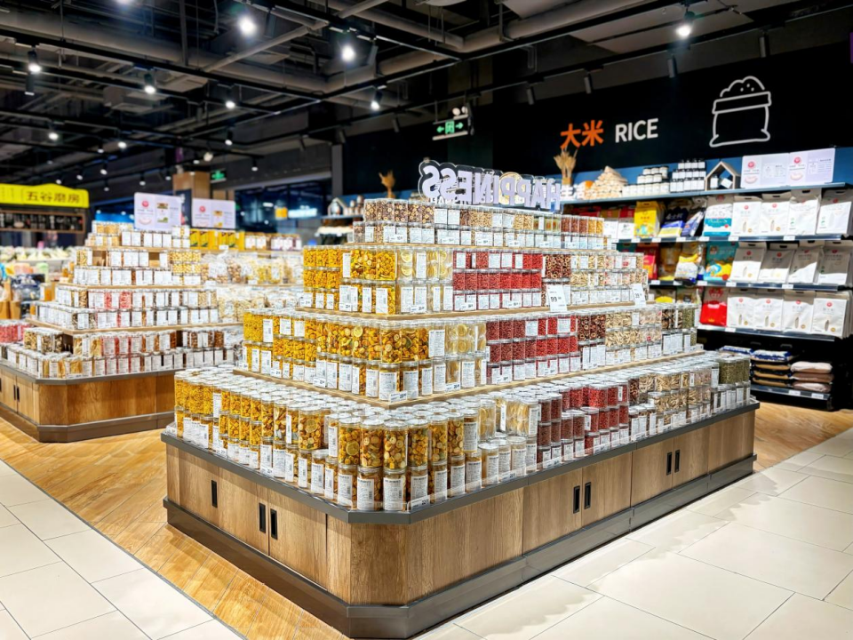 作為區(qū)域商業(yè)標(biāo)桿,青浦寶龍廣場永輝超市的煥新開業(yè)通過“商品重構(gòu)+場景煥新+服務(wù)升級”提升消費體驗。調(diào)改后的門店顛覆傳統(tǒng)布局,優(yōu)化商品陳列動線,拓寬主通道,新增胖東來自有品牌專區(qū)、生鮮直采專區(qū)、即食餐飲區(qū)等,滿足家庭一站式購物需求。