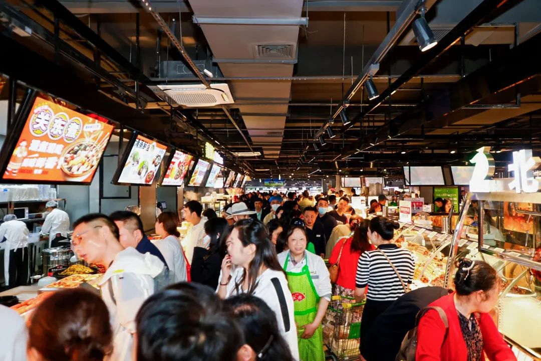 白云店調(diào)改開業(yè)當(dāng)天熟食餐飲區(qū)人潮涌動(dòng)
